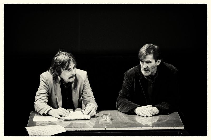Jednoho dne nečekaně vklouzl do hlediště během večerní oprašovací zkoušky komedie „Rodina je základ státu“. Myslel jsem, že se přišel pobavit, ale on se nesmál. O pauze mi pokynul, abych šel za ním. Následoval jsem ho do jeho koutku v šatně, on ze skřínky vytáhl láhev, tuším, Jima Beama, a nalil dva panáky. Když jsem se zeptal, co oslavuje, sdělil mi výsledek svého vyšetření. Ten den se dozvěděl, že mu zbývá přibližně rok života. Od té chvíle uběhlo zhruba deset let a já se už těšil, že ho na jaře příštího roku potkám jako pana vrchního Skřivánka z hotelu Paříž v nové verzi „Anglického krále“ po třiceti (dvou) letech. Úplně slyším, jak coby Pan profesor říká Hrabalovu repliku: „Zábava, to je poezie a vůbec věci a události krásné, a krása má dopad a dosah směřující k transcendentnu, vy volové“.