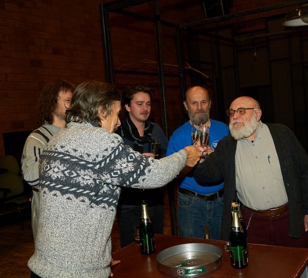 Foto ze zákulisí před představením, děkovačku i následný přípitek - Lukáš Trojan.