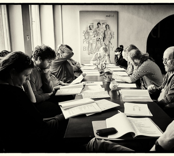 Minulý týden začly první čtené zkoušky na dvě poslední činoherní představení této sezóny - Událost v městečku Goga s režisérem Urošem Trefaltem v klubu Malého divadla a Absolvent v režii nového šéfa činohry Šimona Dominika na zkušebně.
