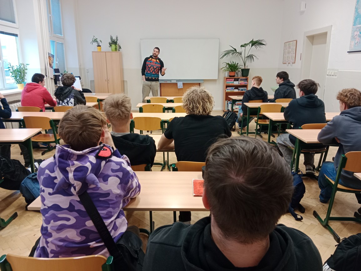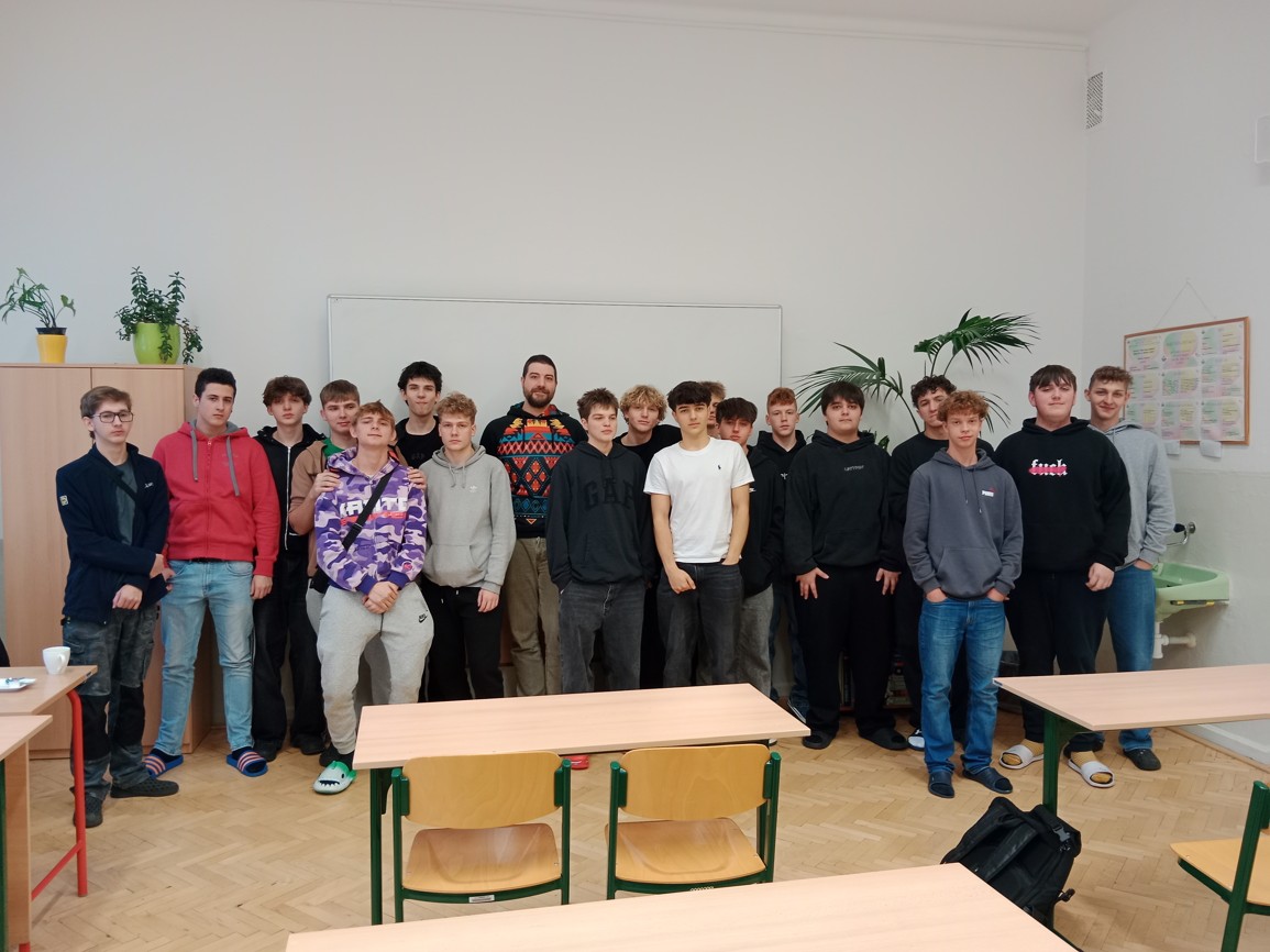 Dne 1.12.2025 proběhl Divadelní workshop - Seznamte se s divadlem pro třídu E3b (3. ročník - obory - elektrikář silnoproud a elektromechanik pro zařízení a přístroje). Studenti se interaktivní, hravou formou seznámili s historií divadla, od rituálu přes performance po ustálené divadelní formy. Seznámili se s principy činohry, opery i baletu. Celým workshopem je provázel herec a divadelní lektor Divadla FXŠaldy Jan Jedlinský.