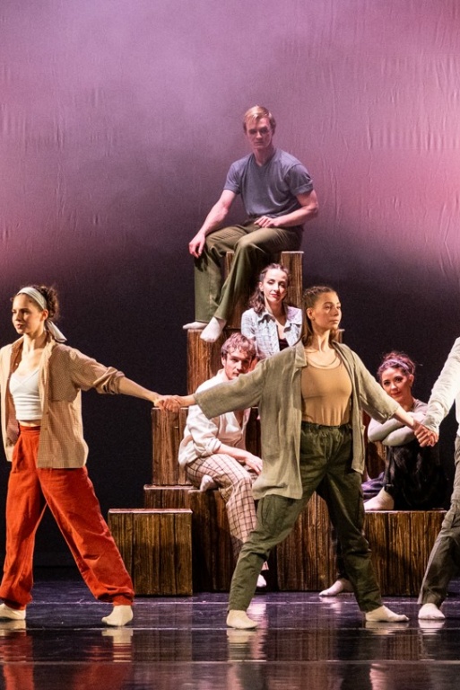 Tanečníky doprovází hudební koláž skotských umělců, která podporuje autenticitu a kulturní propojení mezi choreografií a její inspirací.