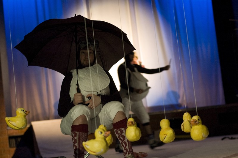 Blíží se potopa světa a tři tučňáci se chtějí zachránit, stejně jako ostatní zvířata. Problém je, že jsou tři, a na archu smí od každého druhu jenom dva. Jak se rozhodnou? Nechají kamaráda ve štychu, nebo to nějak vymyslí? Naštěstí je holubice, která má na starosti kontrolu pozvánek na archu, vyčerpaná a roztržitá a leccos jí unikne... Nápaditá a vtipná biblická bajka německého autora her pro děti, ale nenechte se zmýlit. Filosofující tučňáci zaskočí i mnohého dospělého myslitele. Pro diváky od 6 do 99 let.