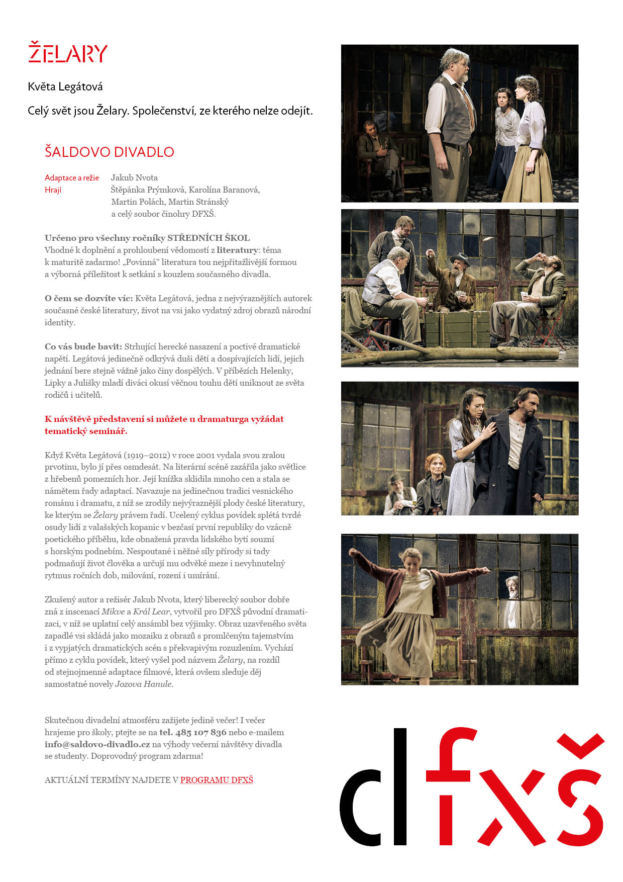 Vstupenky pro školy vždy objednávejte zde: Romana Bílková, tel.: 485 107 836, e-mail: info@saldovo-divadlo.cz