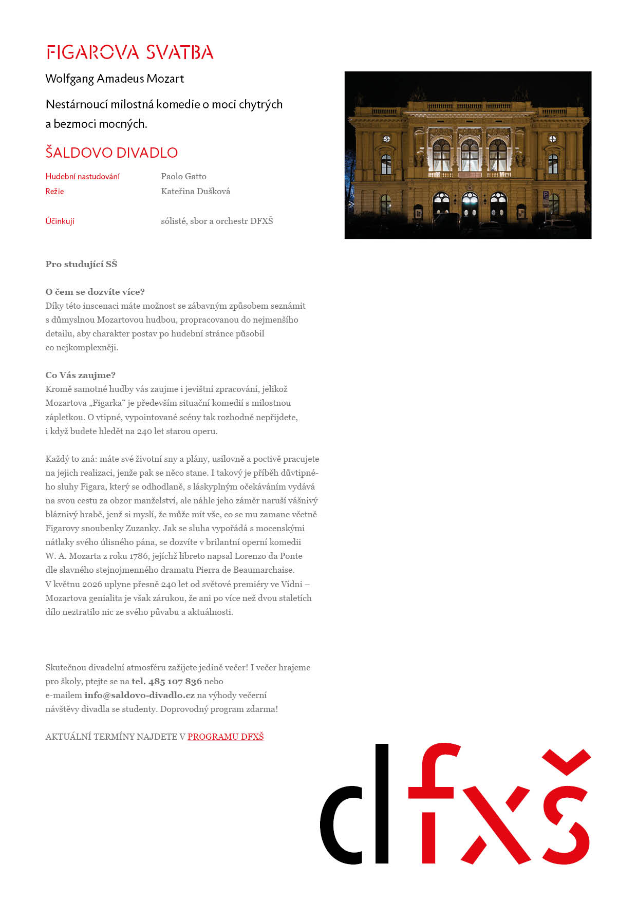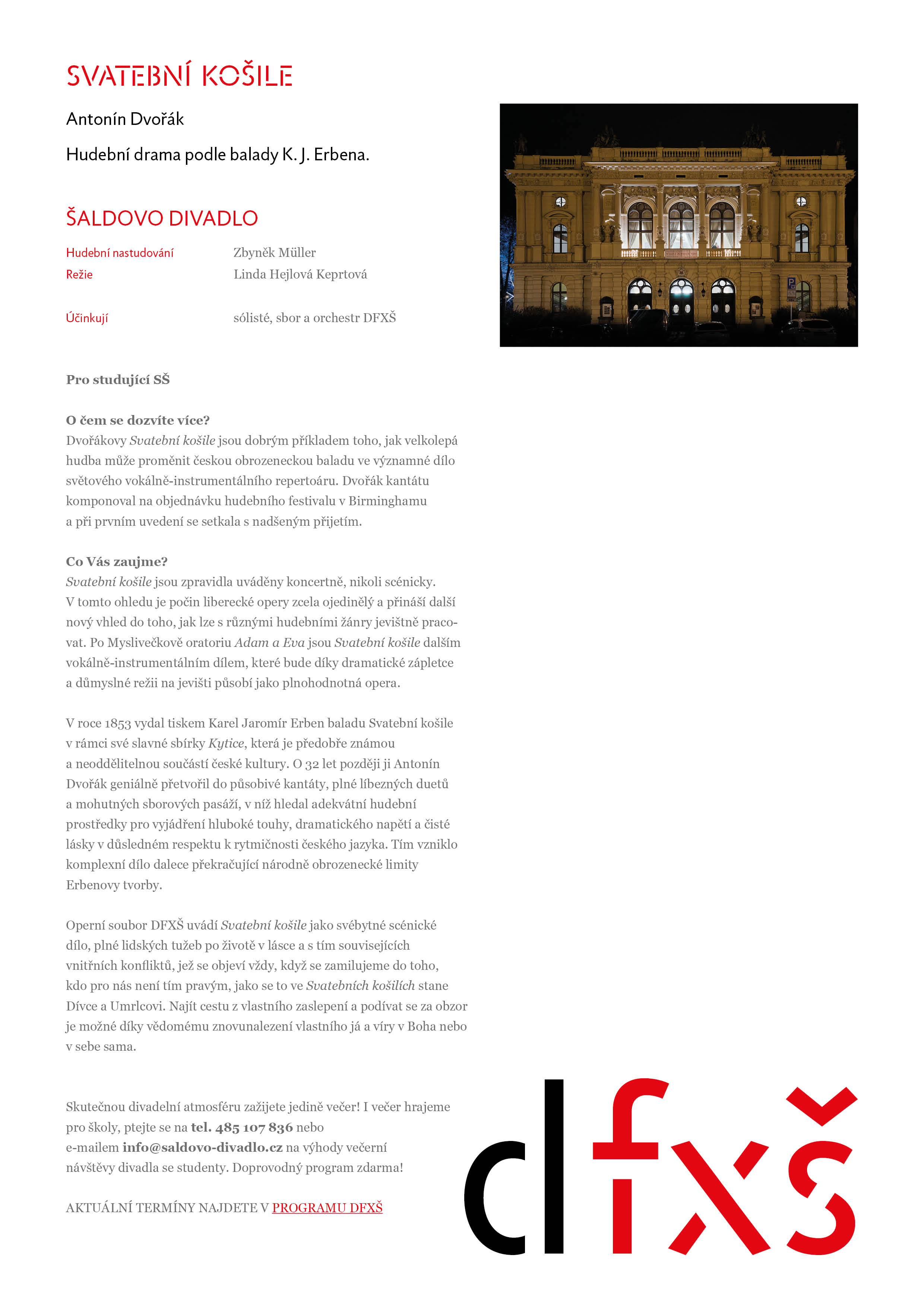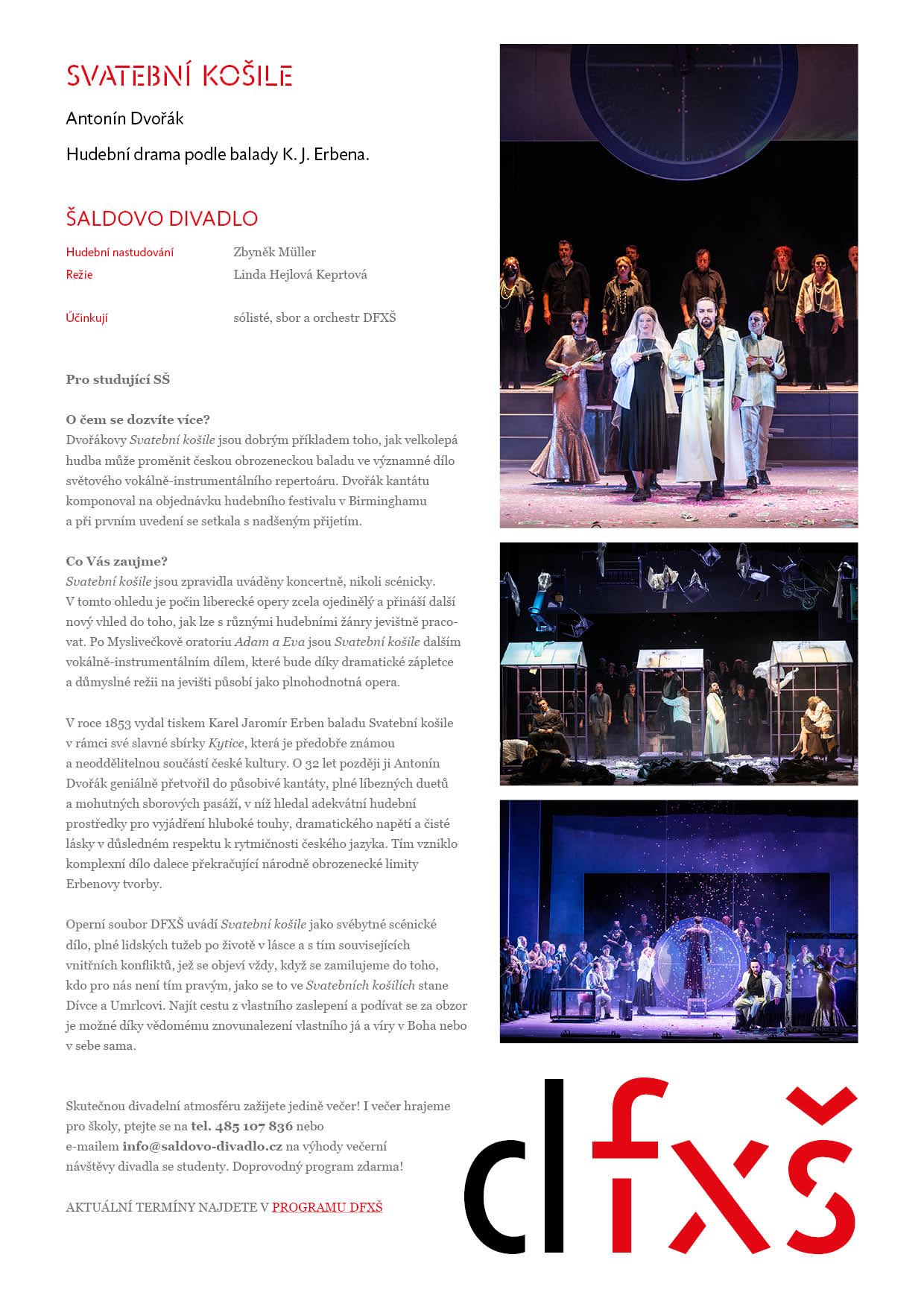Vstupenky pro školy vždy objednávejte zde: Romana Bílková, tel.: 485 107 836, e-mail: info@saldovo-divadlo.cz